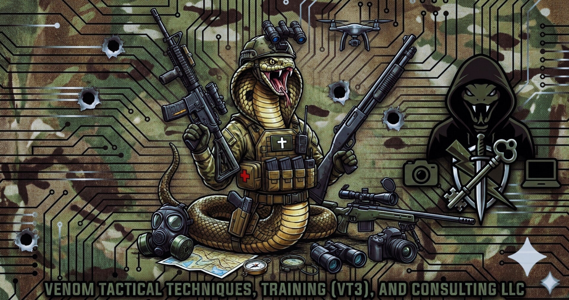 Venom Tactical Techniques, Training (VT3), and Consulting offers personalized, high-intensity training to improve defensive skills, firearms proficiency, and situational awareness for civilians or professionals. Led by experts, these sessions focus on real-world scenarios. Sessions are tailored to the individual's skill level, allowing for accelerated learning and focus on specific areas of improvement. With training often simulates high-stress, dangerous, or emergency situations, helping to bridge the gap between training and reality.