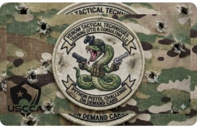 • Description: The Python Pistol Challenge on Demand Card is a specific training tool and qualification offered by Venom Tactical Techniques, Training, (VT3), & Consulting LLC. The Python Pistol Card generally serves as a standards-based evaluation or "skills check" for handgun proficiency. The card is designed to provide a "on demand" standard that a shooter should be able to perform limited warm-up and unknown drills, par times, and distances. It validates that the student has mastered the core fundamentals  If you are looking for the exact drills (distances, par times, and target types) printed on the physical card, these are often proprietary to the course. You can typically acquire them by attending a VT3C training session.